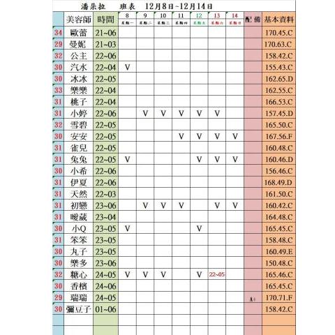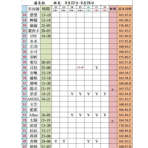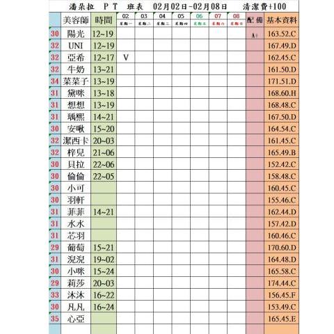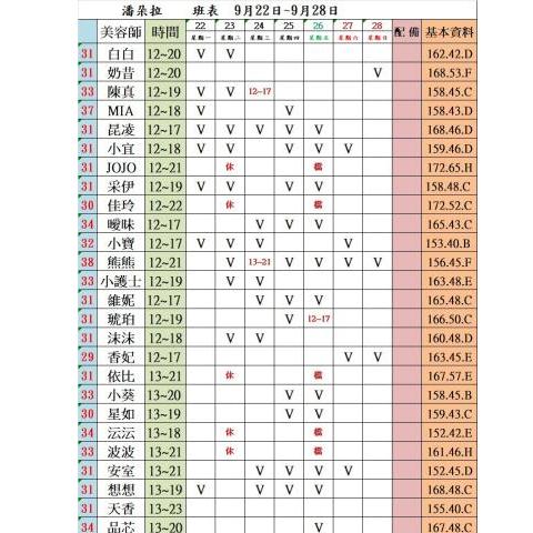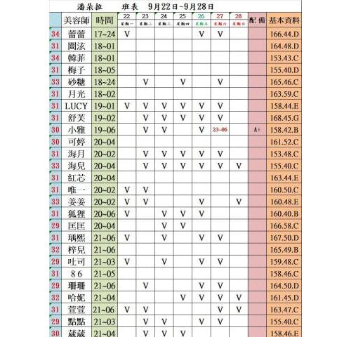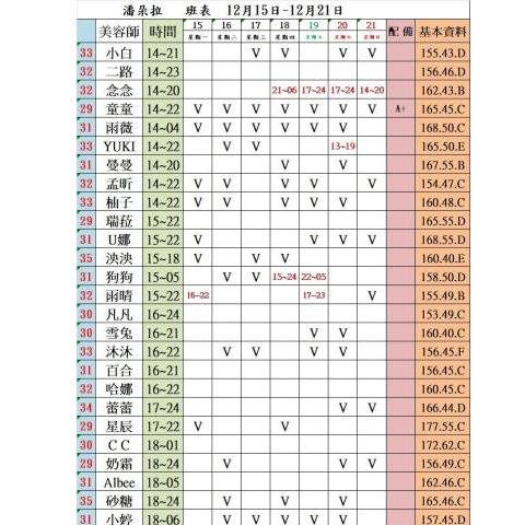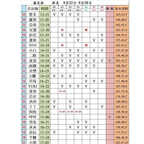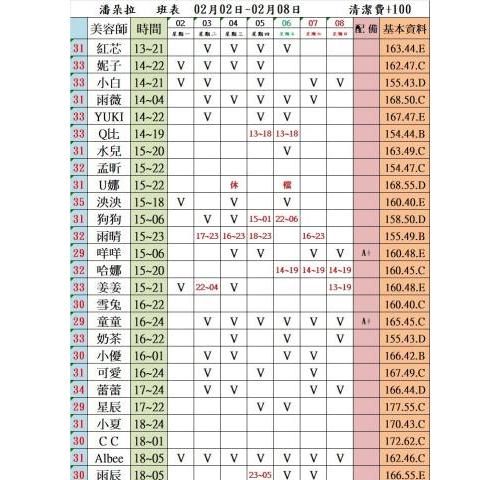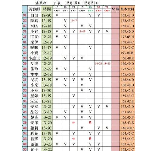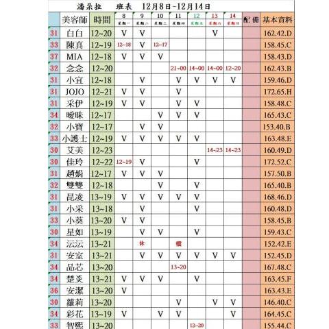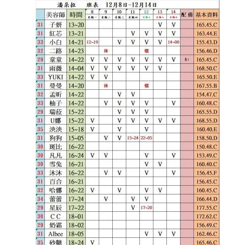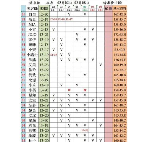 價格: 班表最左邊紅色數字代表價格