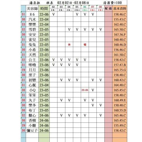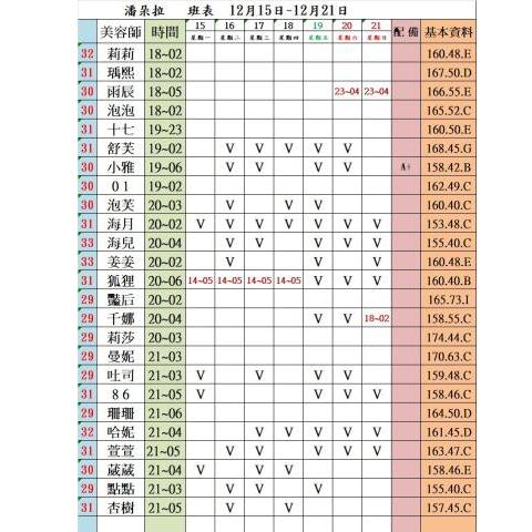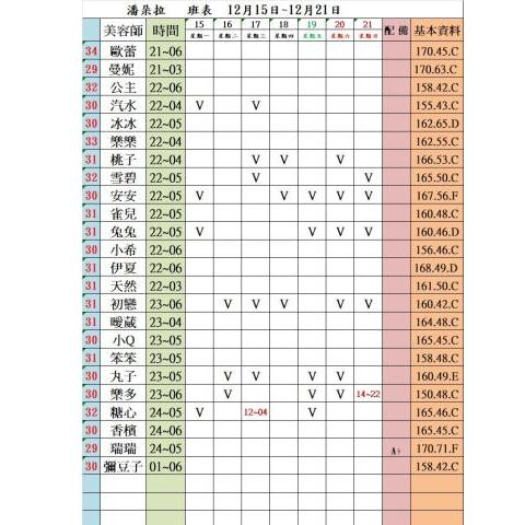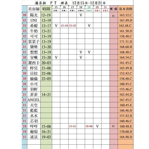 價格: 班表最左邊紅色數字代表價格